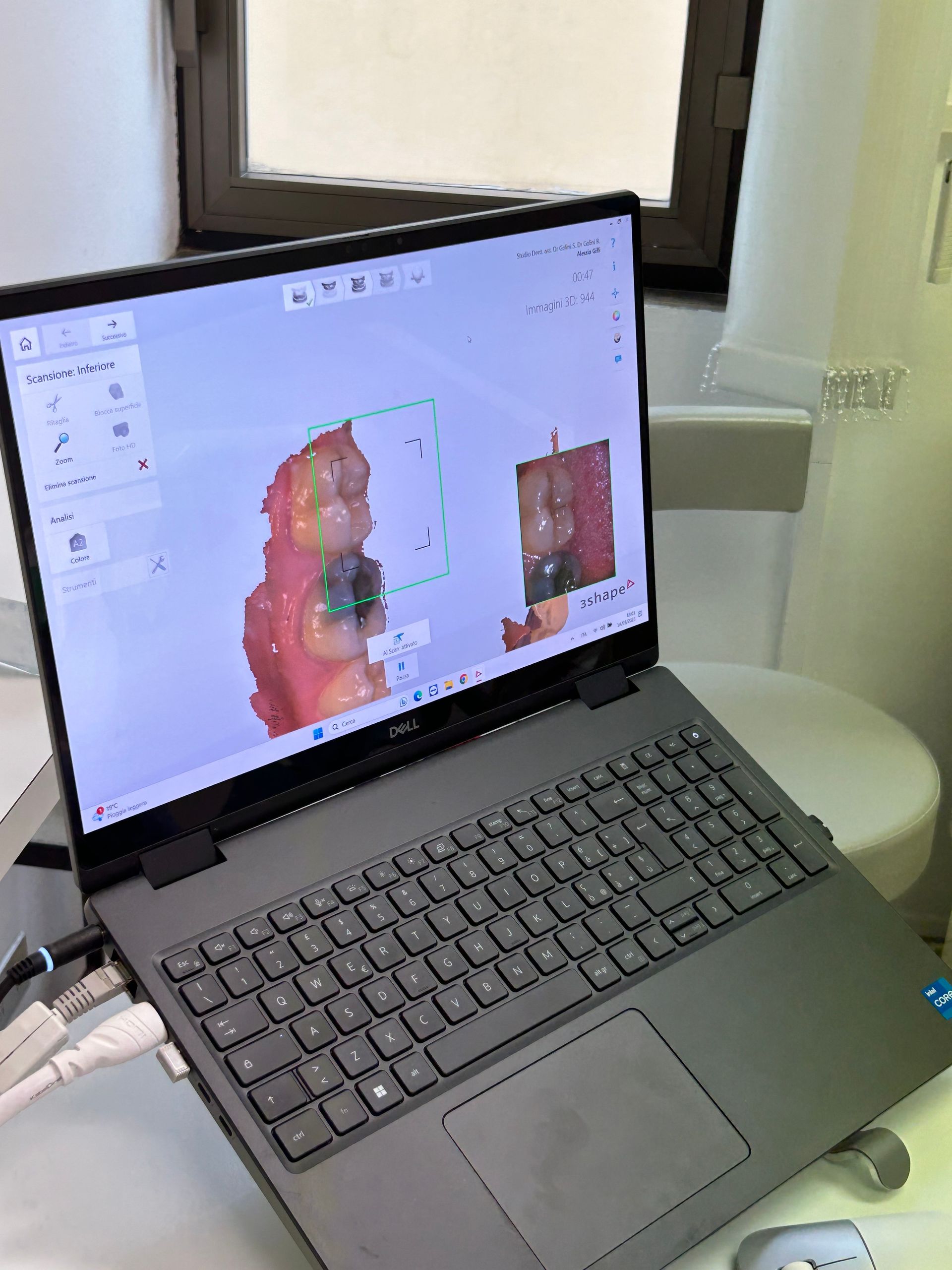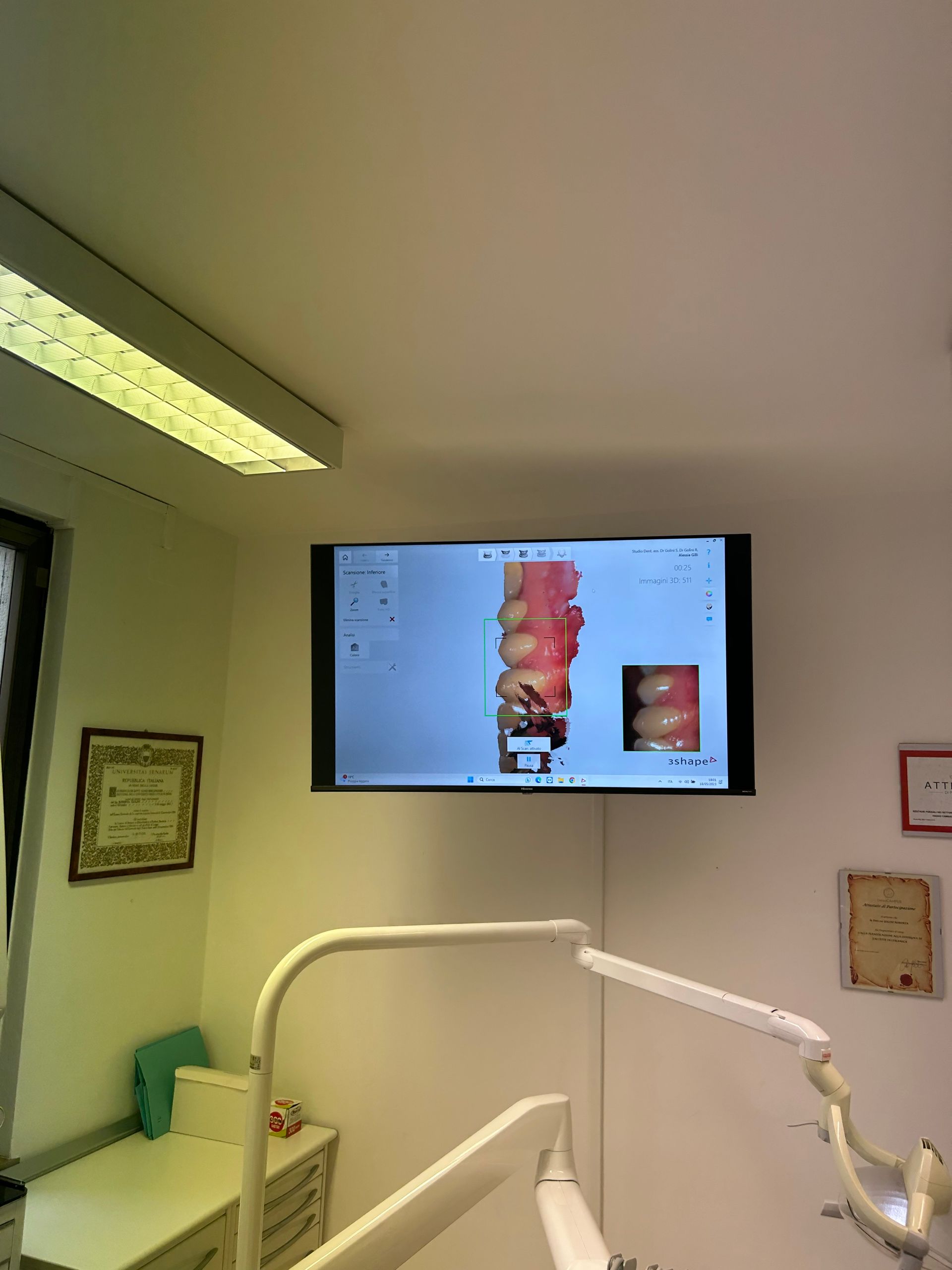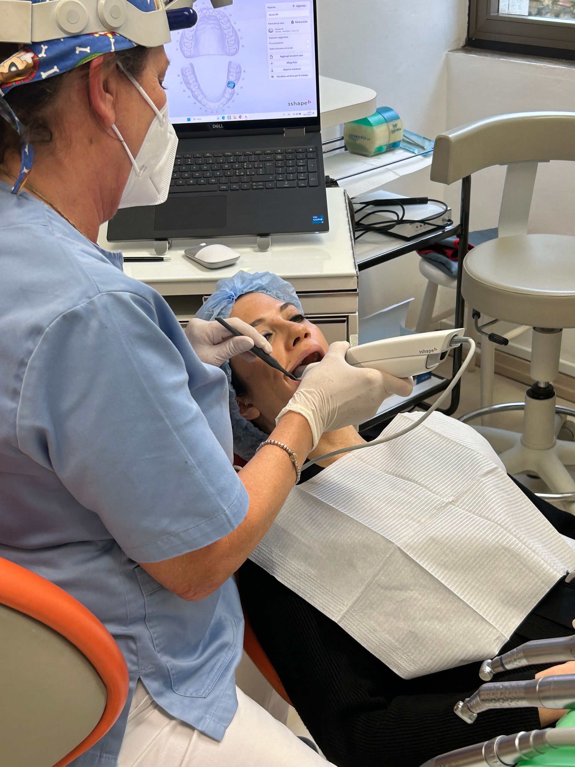 lo scanner consente di identificare con precisione problemi dentali, come carie, erosioni dello smalto e recessioni gengivali. Le immagini aiutano a individuare anche lesioni non visibili a occhio nudo, consentendo una diagnosi precoce e un monitoraggio accurato nel tempo.